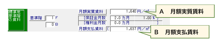 - B 月額支払賃料を入力します。 → 月額実質賃料を計算します。