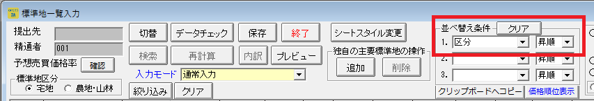 - 基準地のみ入力します。入力モードを「簡易入力」に戻して、本年意見価格または変動率を再入力してください。