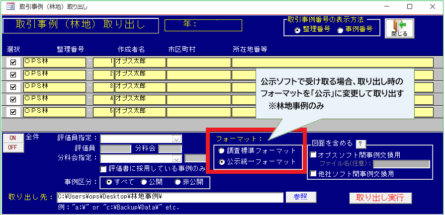 調査ソフトと公示ソフトの各事例 データ移行は、[メインメニュー]-[35.前年公示・調査ソフトのデータ取り込み]から「個別に指定して取り込む」からも可能です。