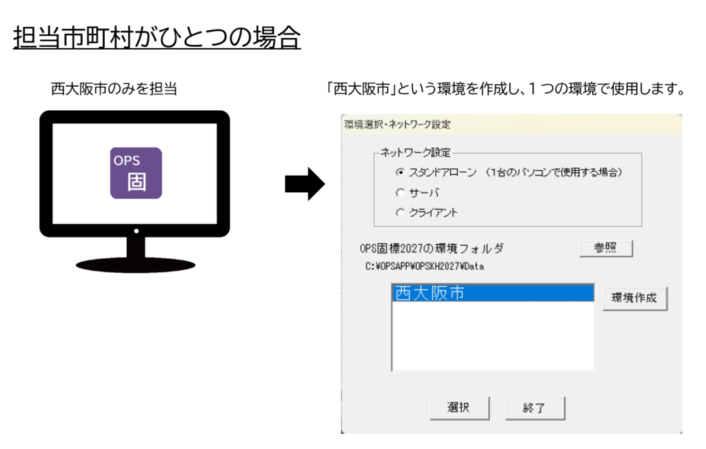 下記の該当するパターンに沿って、環境を作成して使用します。担当市町村が1つの場合