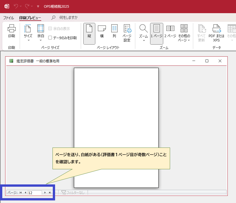 - ページを送り、白紙が表示される(評価書1枚目が奇数ページになる)ことを確認します。