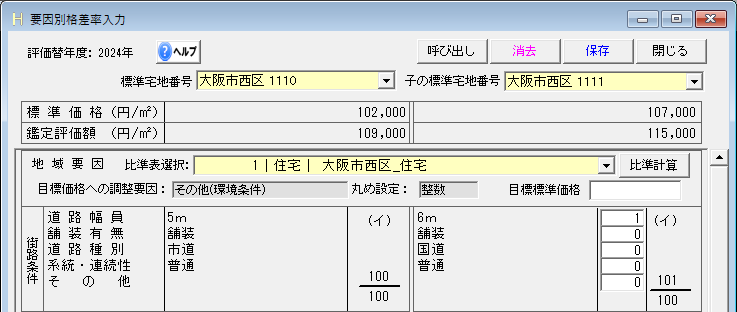 親と子の地域要因を比準表から算出できます。