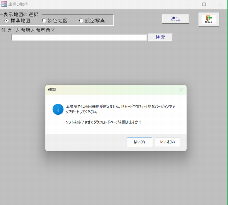 OPS地価調査2024ソフトの地理院地図表示画面が下記のようにグレーで表示される(地図が表示されない)場合の専用アップデートを4月19日に公開することをご案内